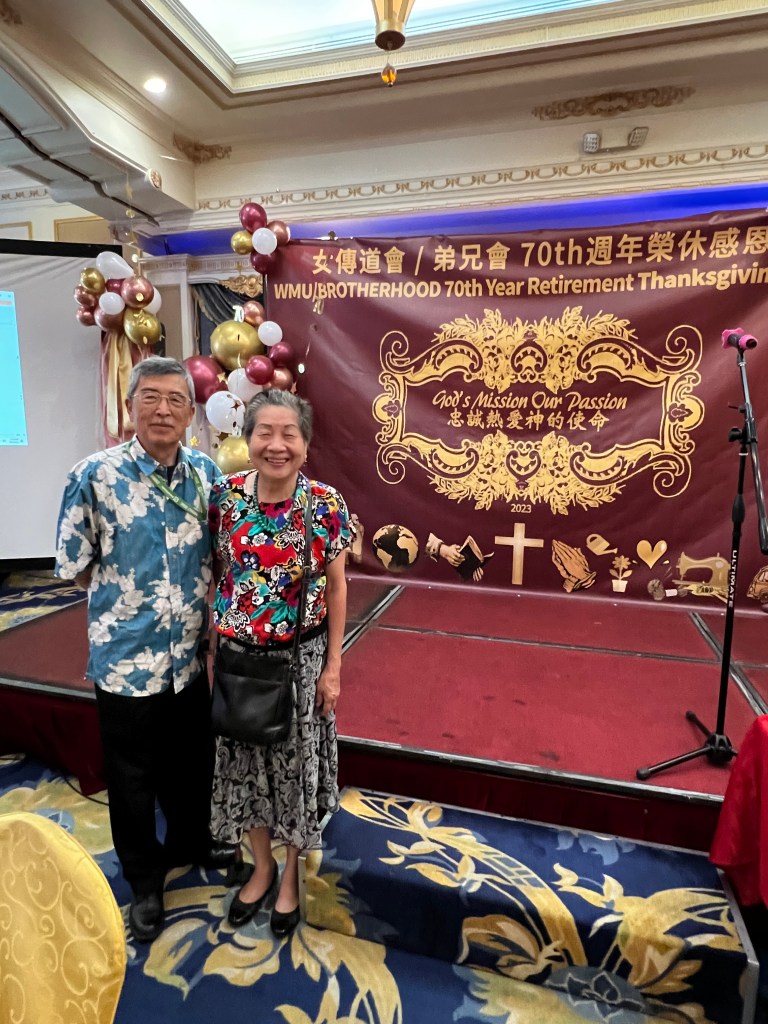 Attending the WMU/Brotherhood 70th year retirement Thanksgiving dinner sponsored by the Cantonese Ministry of First Chinese Baptist Church, Los Angeles at the Capital Seafood restaurant in Monterey Park, CA. 8-6-23