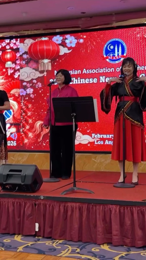 Singing the Malaysia national anthem at the 2024 dragon year celebration sponsored by MASC at the Capital Seafood Restaurant in Monterey Park CA. 2-18-24
